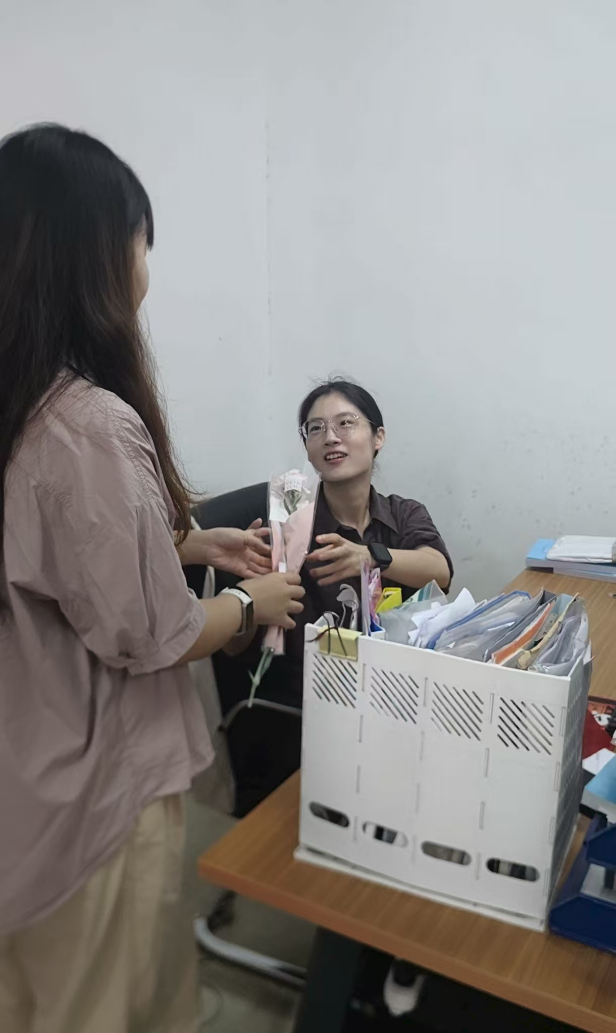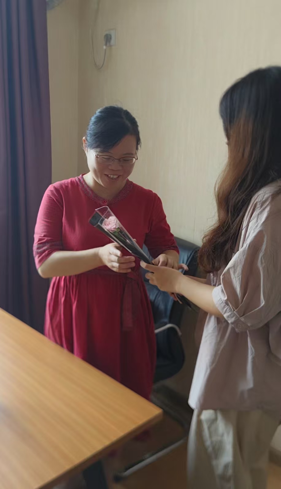 活动当天,团学联的学生代表们手捧鲜花,先后来到课堂、办公室,将一束束象征感恩与敬意的鲜花送到任课教师的手中,向辛勤耕耘在三尺讲台上的老师们致以节日的祝福。同时学生代表们还拜访了学院领导、学院办公室主任、教学秘书、辅导员们,表达了对他们在教育教学、管理服务和学生成长中默默付出的由衷感谢。